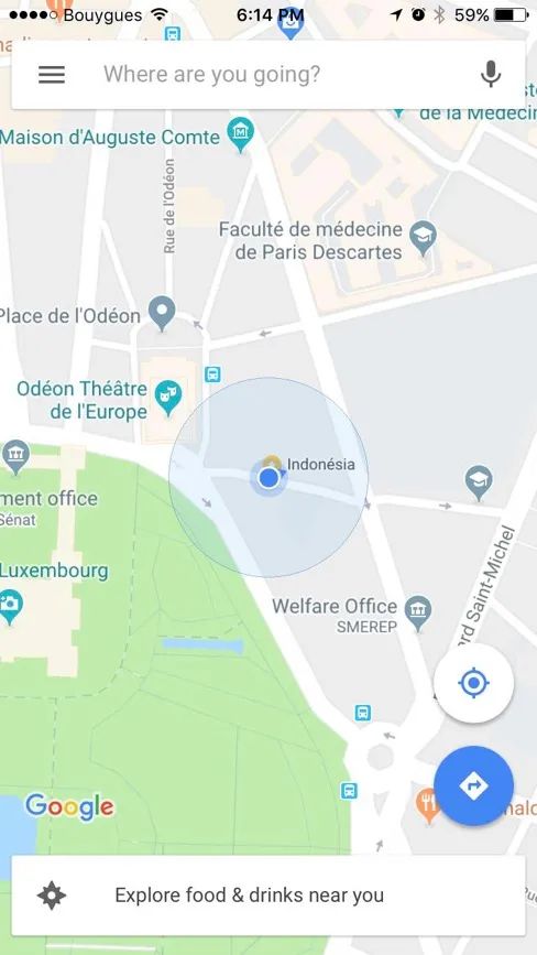 “印度尼西亚”餐厅在谷歌地图上的位置,截图